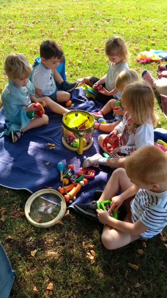 Today we enjoyed playing in our favourite park, singing songs, playing musical instruments and drawing. We loved wearing capes and running around dancing to our favourite Frozen songs. After a very busy morning we all enjoyed sitting in the shade under our favourite tree listening to stories.
