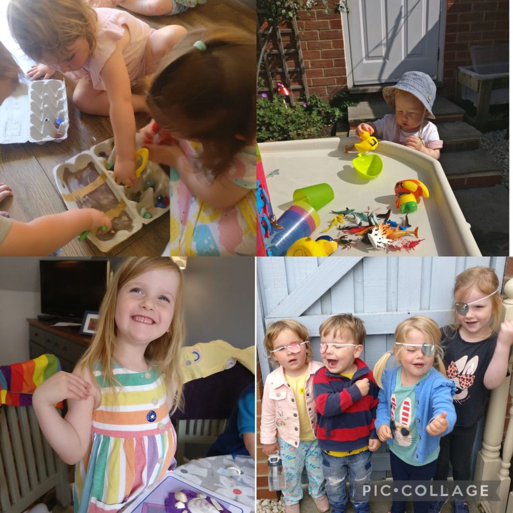 What a lovely first week back after summer we have had with all of new starters settling in so well and enjoying our pirate theme. We’ve made telescopes, used our hand prints to make amazing pirate artwork and loved playing with our new tuff tray- thank you sunshine! The children especially enjoyed making treasure maps and using them to go on a treasure hunt and finding a treasure chest in Chloe’s garden full of gems and snacks!